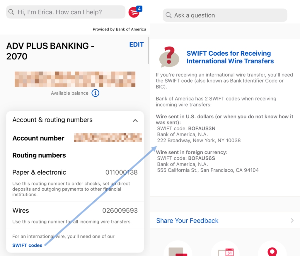 因此,在進行任何交易時,特別是電匯,務必確認使用正確的號碼。如果在美國的國內交易(如 ACH 轉帳、直接存款設定),使用依州別的 Paper & Electronic Routing Number;如果是國內或國際電匯,則需要使用電匯專用的 Routing Number (026009593)。
